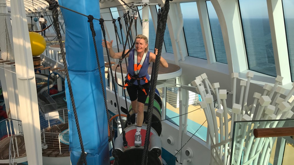 Der Beachclub om obersten Deck unter der Glaskuppel lädt am Tag zum Erholen und Schwimmen ein.